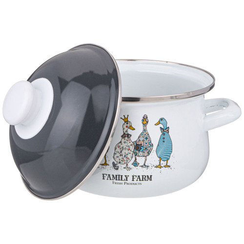Кастрюля эмалированная с эмал.крышкой серия "FAMILY FARM", 1.5 л, 16*10 см AGNESS 934-620