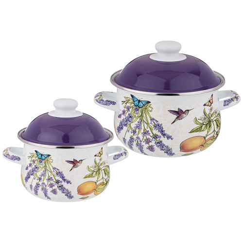 Набор кастрюль эмалированных серия "ПРОВАНС ЛИМОНЫ", 4пр. 1,5л и 2,8л, 16х10см, 20х12см AGNESS 934-700