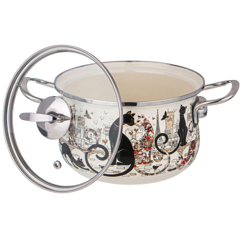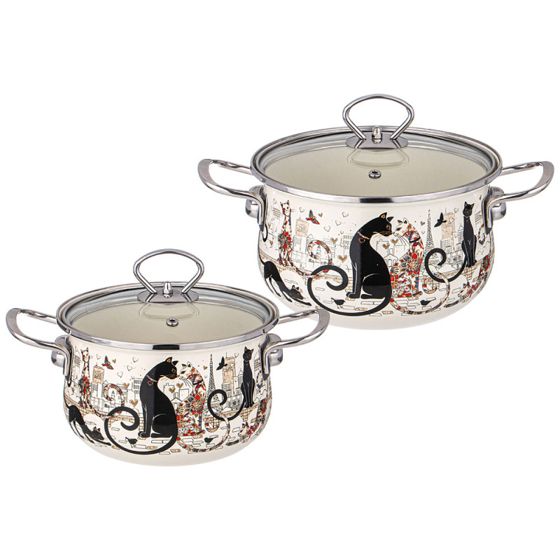 Набор кастрюль эмалированных серия "ПАРИЖСКИЕ КОТЫ" 4пр. 2,0л и 2,8л, 18х11см, 20х12см AGNESS 934-710