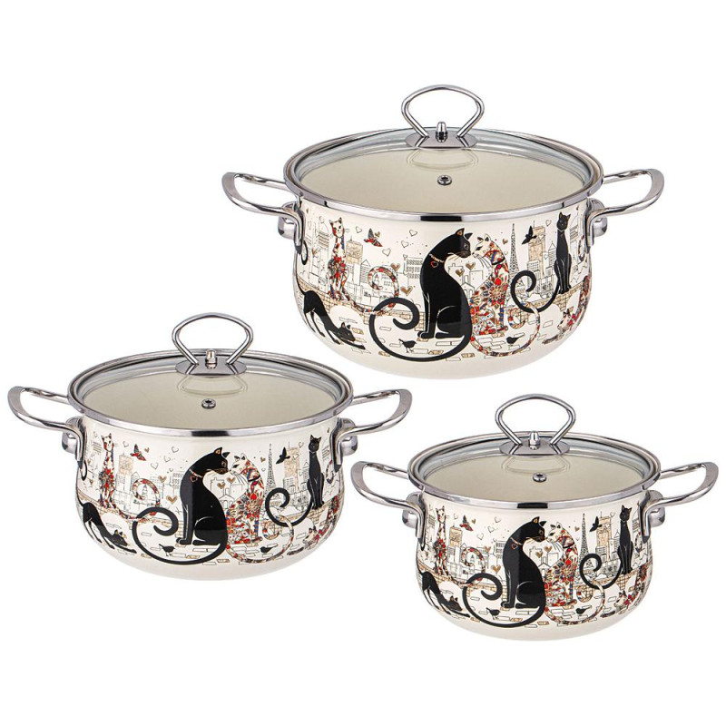 Набор кастрюль эмалированных серия " ПАРИЖСКИЕ КОТЫ" , 6пр. 2, 0/2, 8/3, 6л, 18х11/20х12/22х13см AGNESS 934-715