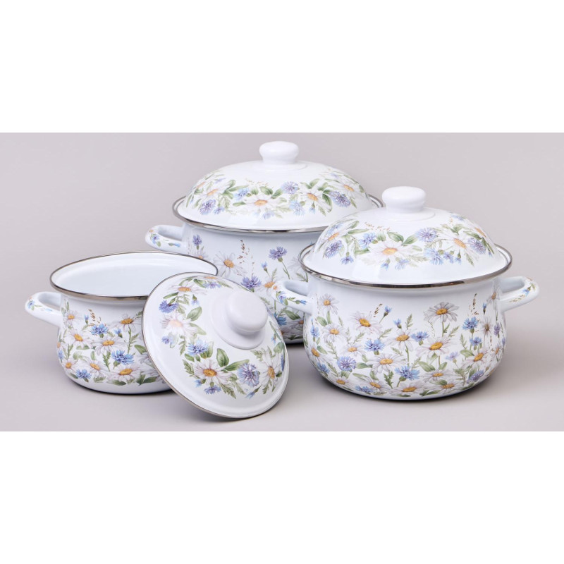 Стильный и нежный декор эмалированной посуды украсит любую кухню.