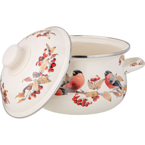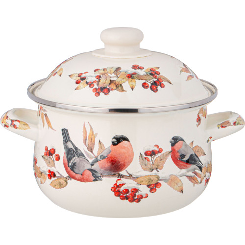 Кастрюля эмалированная с эмал.крышкой серия "СНЕГИРИ", 2.0 л, 18*11 см AGNESS 934-731