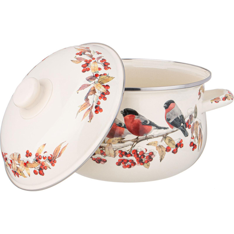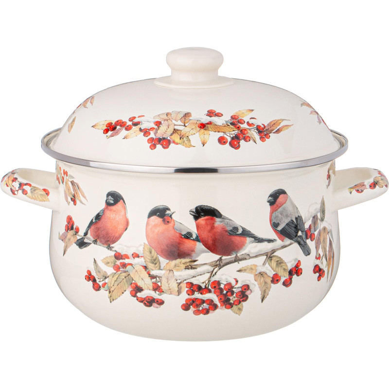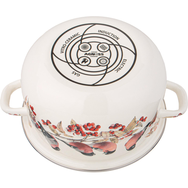 Кастрюля эмалированная с эмал.крышкой серия "СНЕГИРИ", 3.6 л, 22*13 см AGNESS 934-733