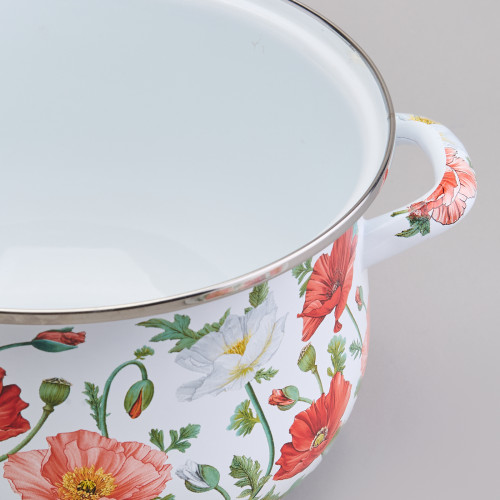 Стильный и нежный декор эмалированной посуды украсит любую кухню.
