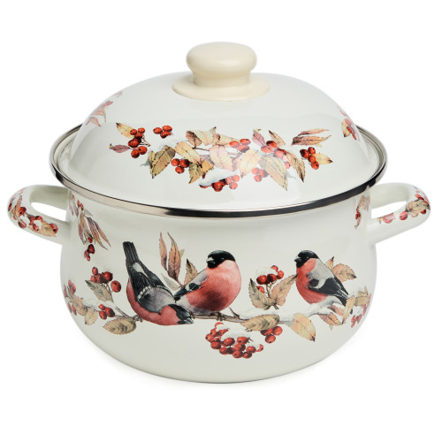 Кастрюля эмалированная с эмал.крышкой серия "СНЕГИРИ", 2.8 л, 20*12 см AGNESS 934-747