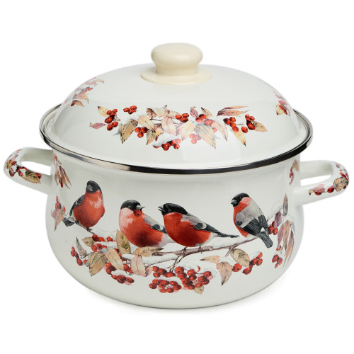 Кастрюля эмалированная с эмал.крышкой серия "СНЕГИРИ", 3.6 л, 22*13 см AGNESS 934-748