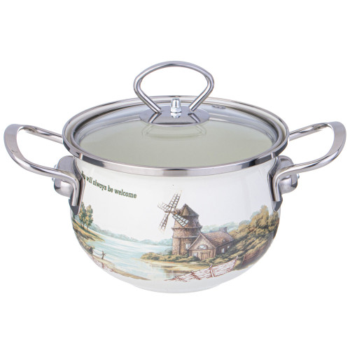 Кастрюля эмалированная со стеклянной крышкой серия "FAMILY HOUSE", 1,5 л диа.16см AGNESS 943-065