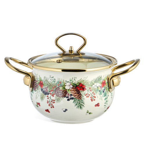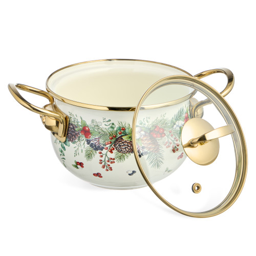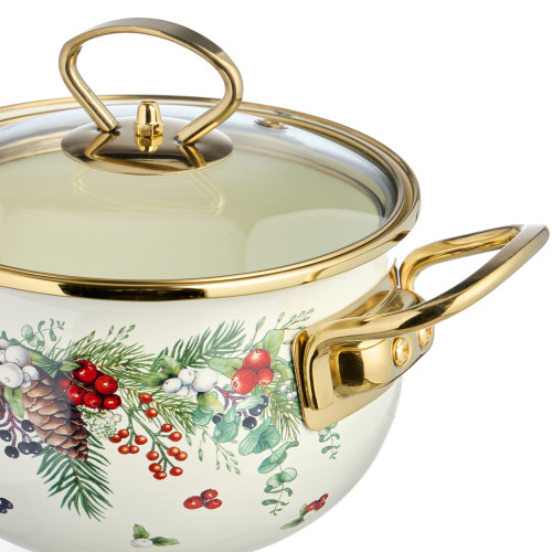 Кастрюля эмалированная со стеклянной крышкой серия "CELEBRATION", 1.5 л, 16*10 см AGNESS 943-082