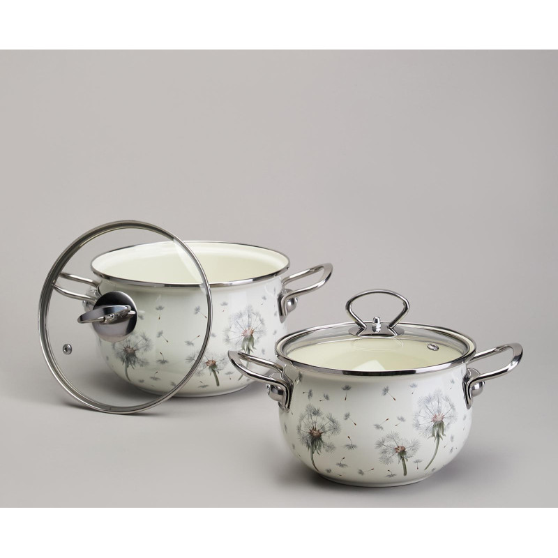 Набор кастрюль эмалированный, серия "DANDELION" 4пр. 2,0/2,8л диа.18/20см AGNESS 943-100