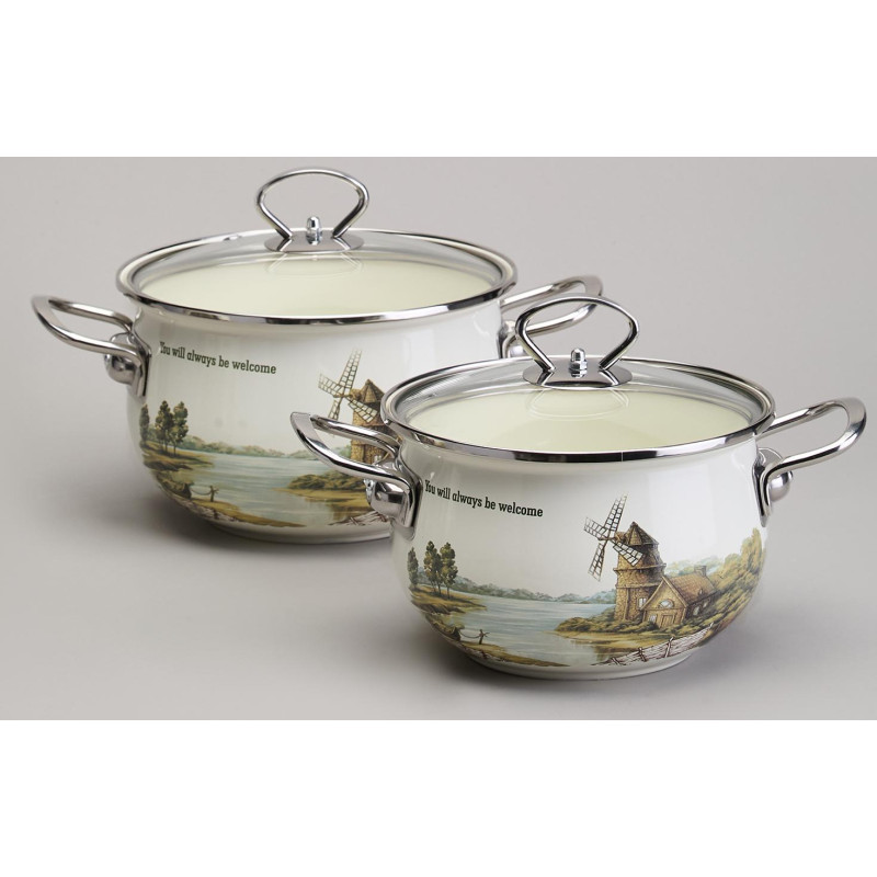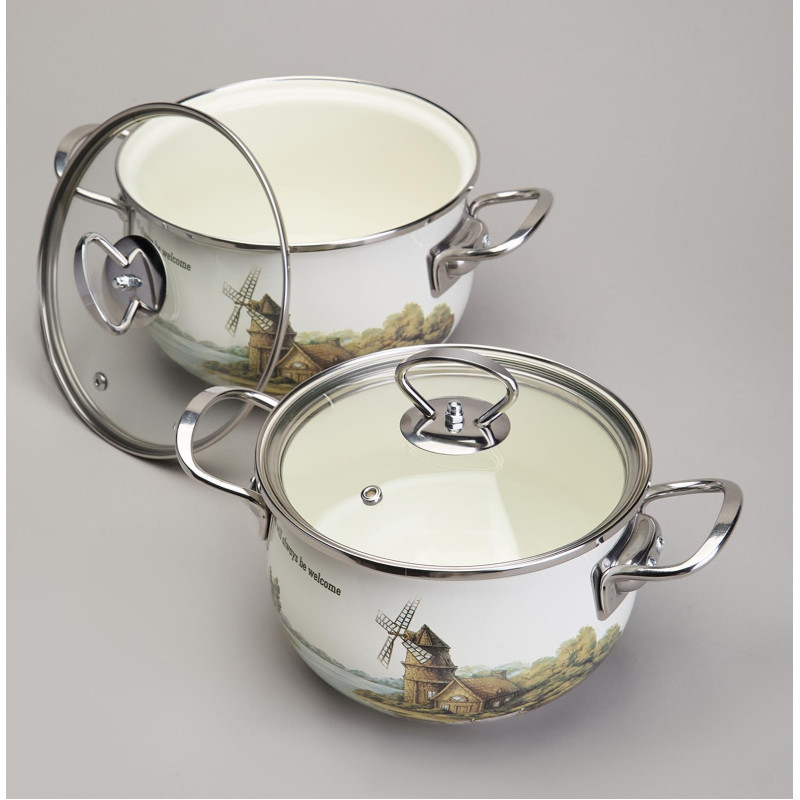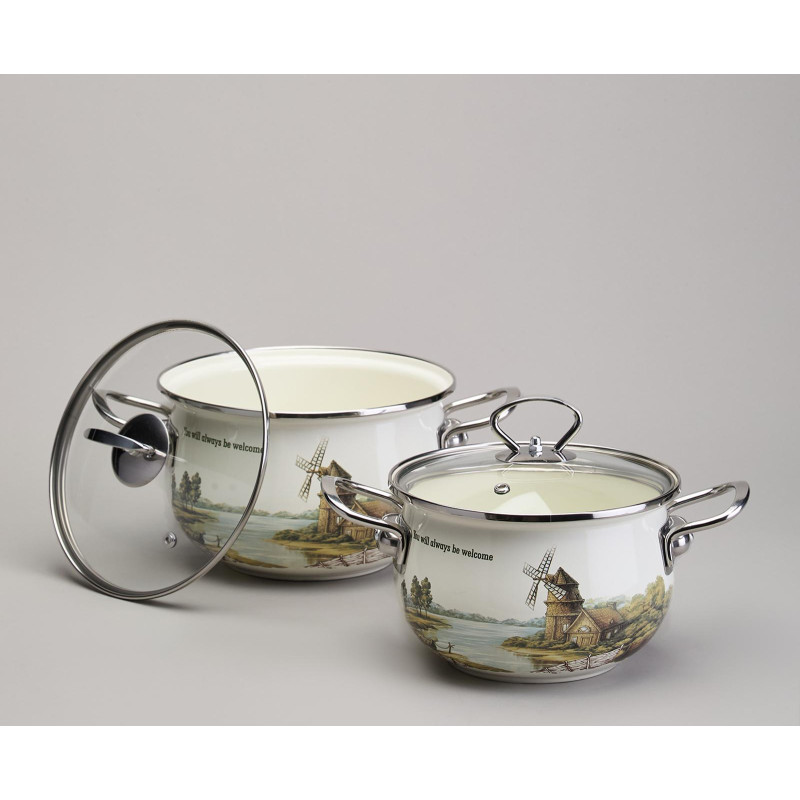 Набор кастрюль эмалированный, серия "FAMILY HOUSE" 4пр. 2,0/2,8л диа.18/20см AGNESS 943-101