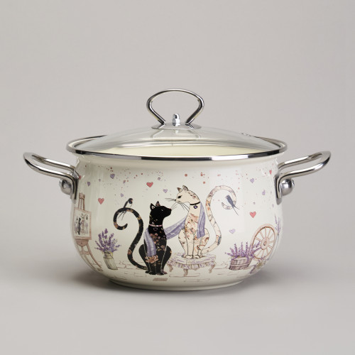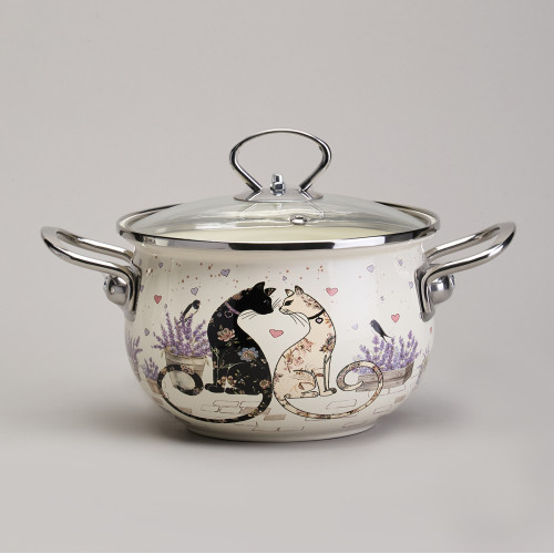 Набор кастрюль эмалированный, серия "lavender cats 6пр. 2,0/2,8/3,8л диа.18/20/22см AGNESS 943-107