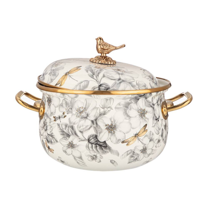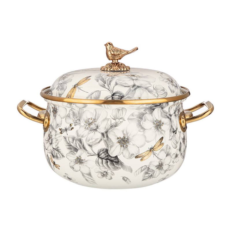 Кастрюля эмалированная с крышкой, серия яблоневый сад 2,8л, диа.18см подходит для индук.пл AGNESS 950-522