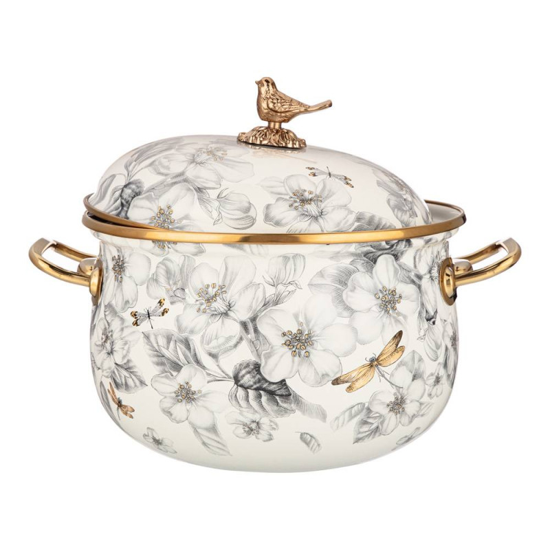 Кастрюля эмалированная с крышкой, серия яблоневый сад 3,8л, диа.20см подходит для индук.пл AGNESS 950-523
