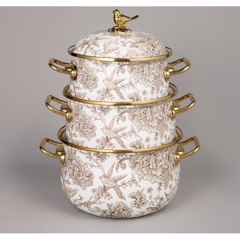 Набор кастрюль эмалированных серия "ROYAL GARDEN", 6пр. 2,1л, 2,8л и 3,8л AGNESS 950-605