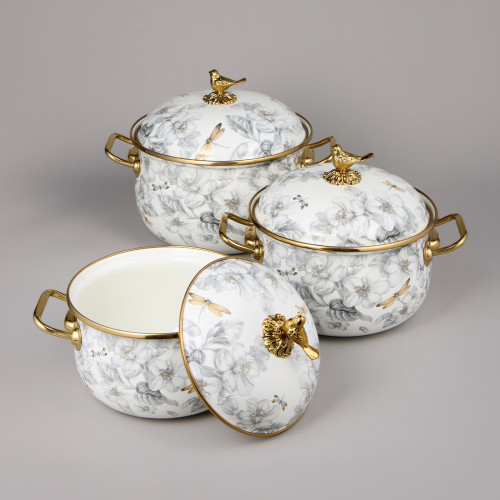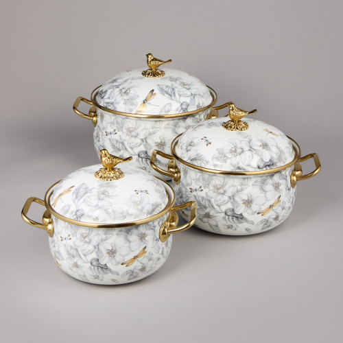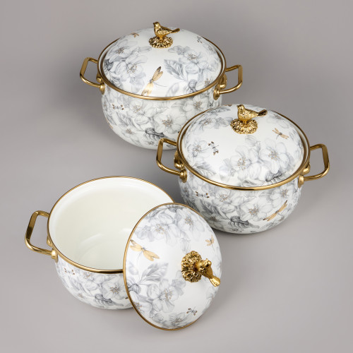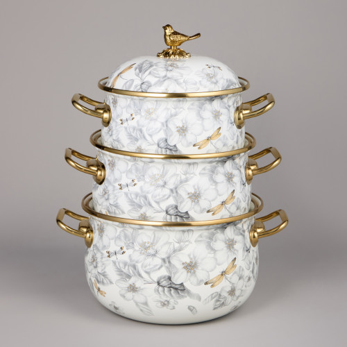 Набор кастрюль эмалированных серия "ЯБЛОНЕВЫЙ САД", 6пр. 2,1л, 2,8л и 3,8л AGNESS 950-606