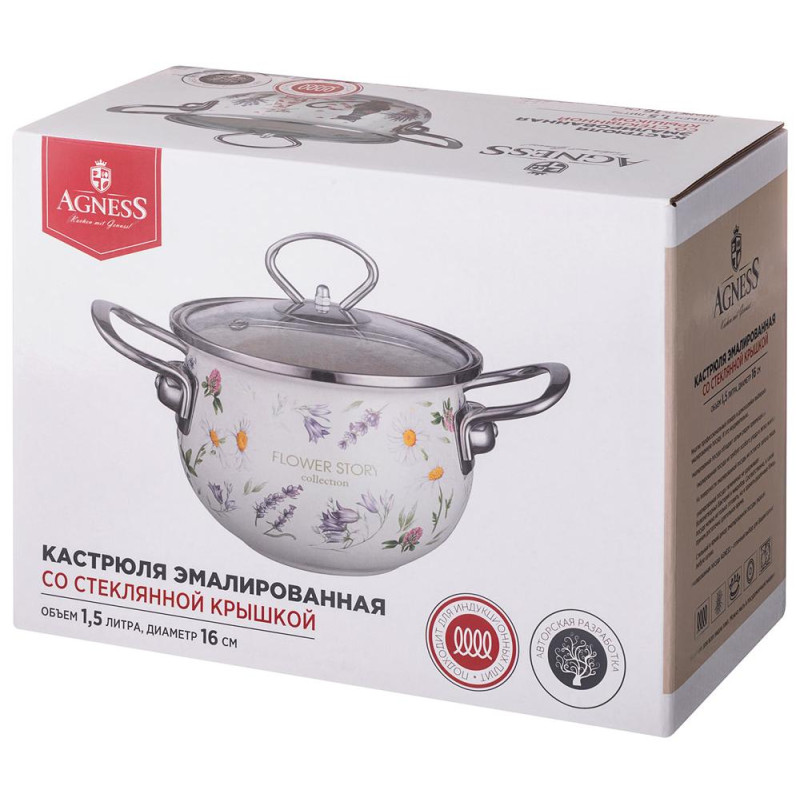 943-095 Кастрюля Agness (1.5л) эмалированная со стеклянной крышкой серия 'Flower story'