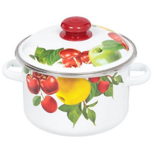 3MD181M-Э Кастрюля эмал. (3л, цилиндр) c ободком белая Эльза