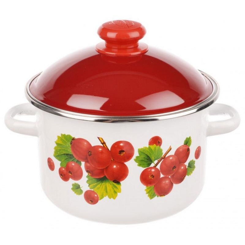 6MD161M Кастрюля эмал. (2л, цилиндр) c ободком бел.кр.вишнев.декор Калина Красная