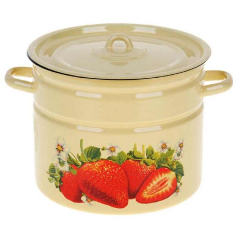 С1622.П*59 Кастрюля цилиндр 9.0л эмал. деколь Клубника садовая палевая с петлей