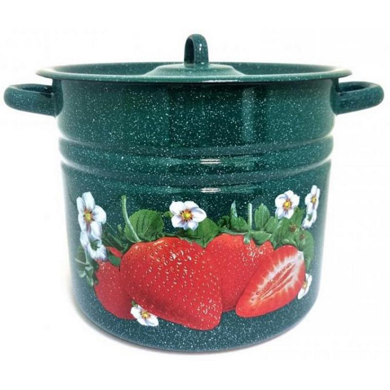 С1622.з*59 Кастрюля (9.0л, цилиндр) эмал., деколь Клубника садовая зеленый рябчик, с петлей