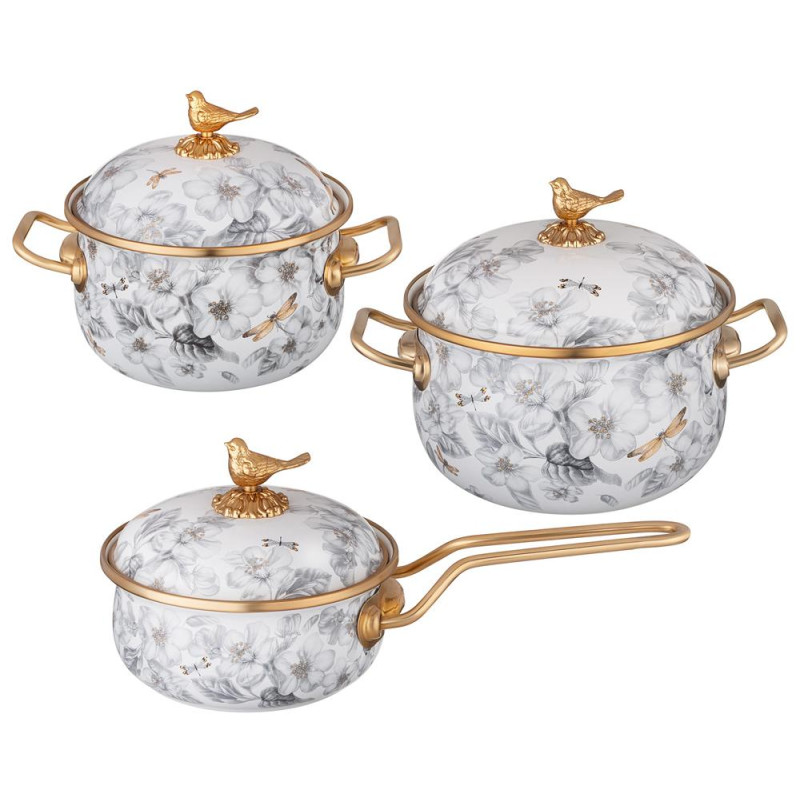 Набор посуды серия яблоневый сад 6пр: кастрюли 2,1л+2,8л (16+18см) и ковш 0,9л (14 см) LEFARD 950-780