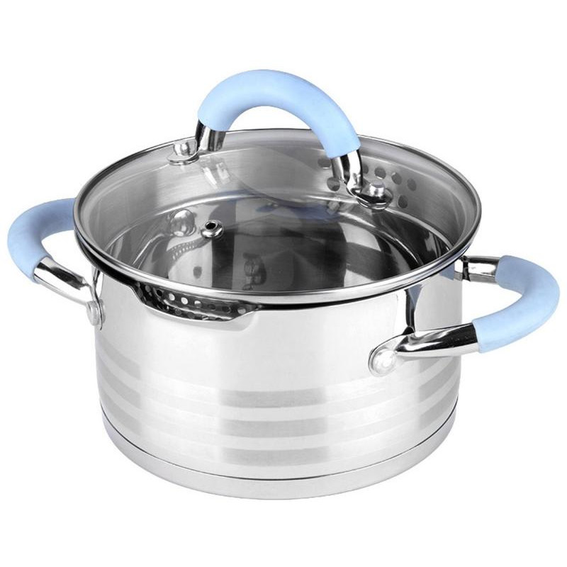 1, 8л (16см), нерж.сталь, крышка-дуршлаг, 2 носика для слива, 5-тислойное капсулированное дно, подходит для всех типов плит, ручки стальные полые с покрытием из силикона
