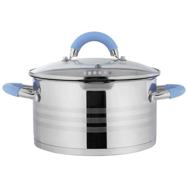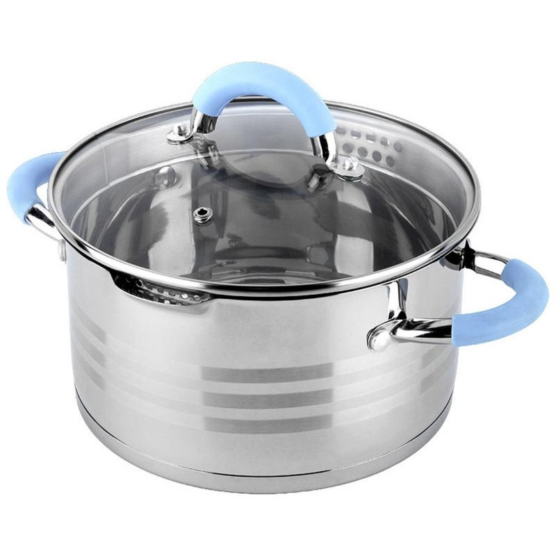 3, 4л (20см), нерж.сталь, крышка-дуршлаг, 2 носика для слива, 5-тислойное капсулированное дно, подходит для всех типов плит, ручки стальные полые с покрытием из силикона