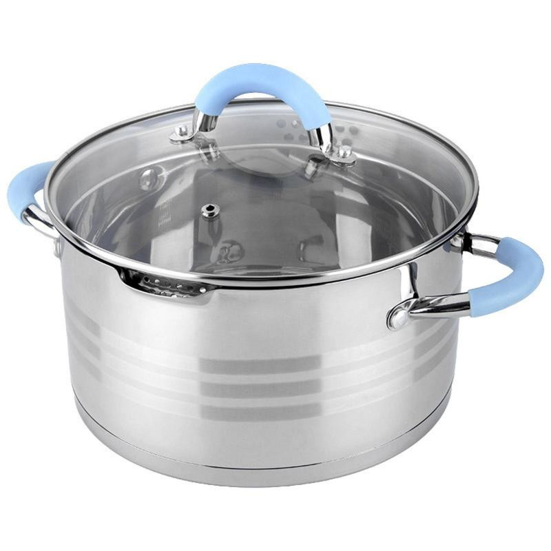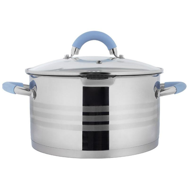 4, 5л (22см), нерж.сталь, крышка-дуршлаг, 2 носика для слива, 5-тислойное капсулированное дно, подходит для всех типов плит, ручки стальные полые с покрытием из силикона