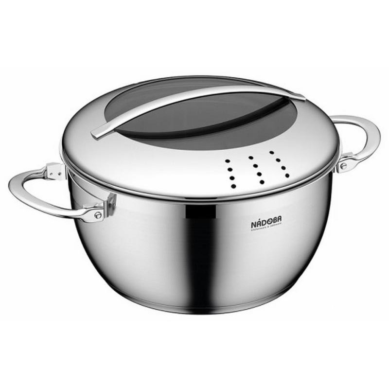 2.8л, 20см, нерж.сталь, крышка стекло/нерж.сталь со встроенным дуршлагом, складные ручки нерж.сталь, маркировка литража, подходит для всех типов плит