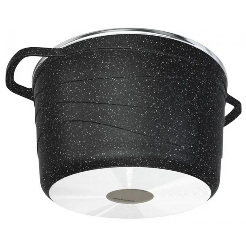 3.0л, дно 4см, литой алюминий, гранитное антипригарное покрытие, крышка d21.2см жаропрочное стекло/нерж.сталь, подходит для всех видов плит, кроме индукции
