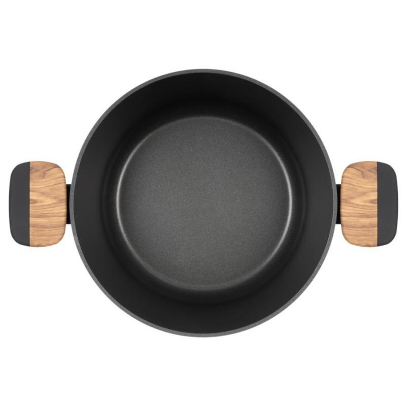 4.4л, диаметр 24см, литой алюминий/стекло, антипригарное покрытие, дно усилено антидеформационным диском, подходит для всех типов плит, включая индукцию