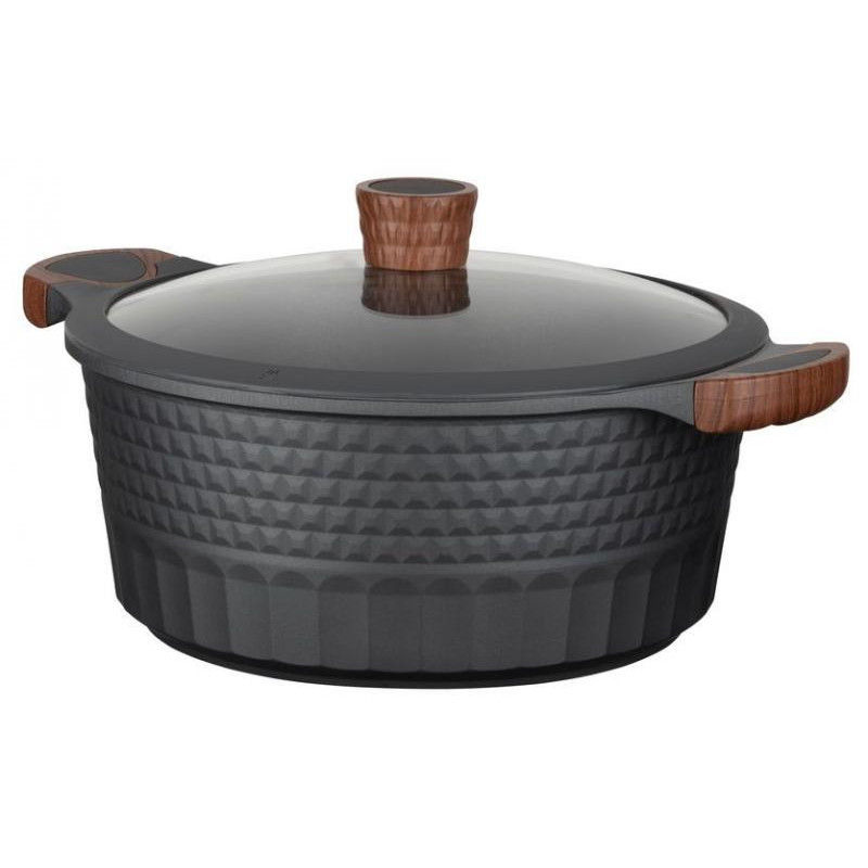 6.6л, диаметр 28см, литой алюминий/стекло, антипригарное покрытие, подходит для всех типов плит, включая индукцию