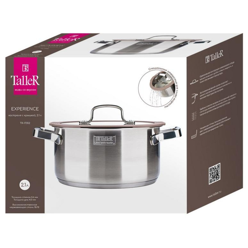 2.1л, сталь, крышка стекло/сталь/силикон, ручки сталь, шкала литража, подходит для всех видов плит и посудомоечной машины