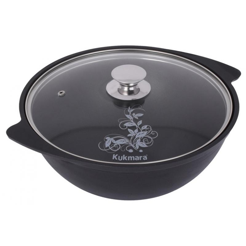 4.5л, литой алюминий (дно до 6мм), антипригарное покрытие, 2 литые ручки, крышка стекло, можно мыть в посудомоечной машине, для всех плит, кроме индукции