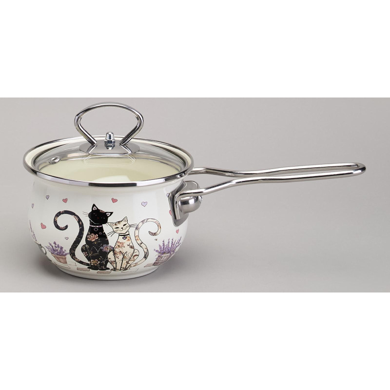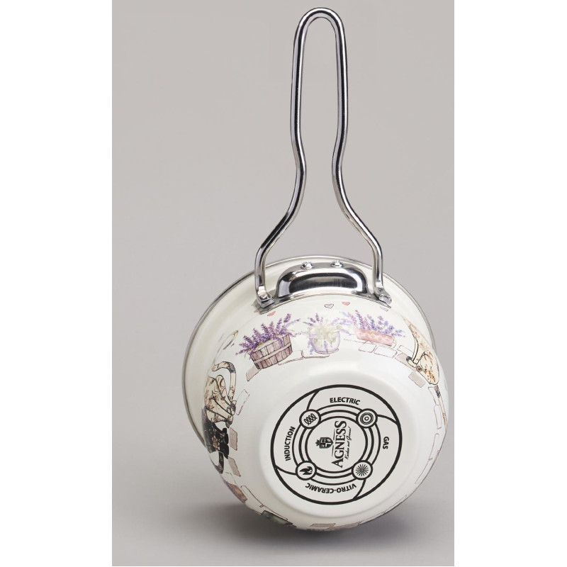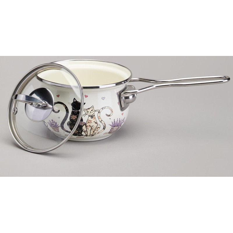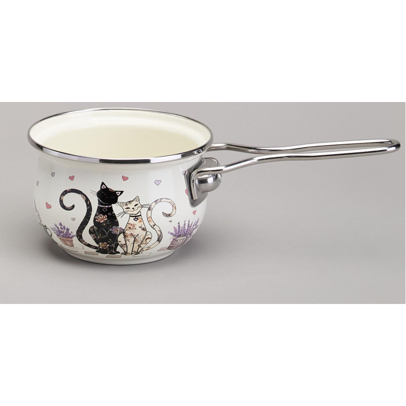 Ковш эмалированный серия "LAVENDER CATS" 0,9л, диа 14 см AGNESS 943-079