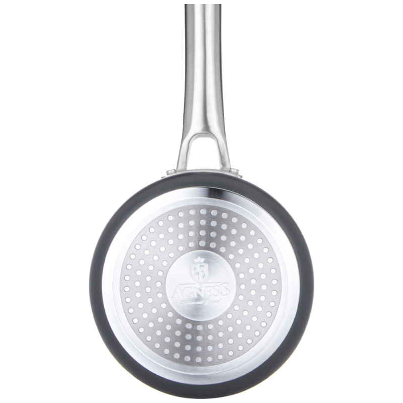 КОВШ С КРЫШКОЙ "CHEF"AGNESS выполнен из толстостенного прессованного алюминия 3, 5мм , что гарантирует быстрый и равномерный нагрев.Сверхпрочная трехслойная структура антипригарного покрытия Daikin обеспечивает превосходные эксплуатационные качества и долгий срок службы посуды. Внешняя стенка имеет низкую теплопроводность и отлично сохраняет температуру на протяжении длительного времени давая возможность блюду настояться и полностью раскрыться всем вкусовым составляющим. Посуда серии CHEF бренда AGNESS - это современный дизайн и передовые технологии.