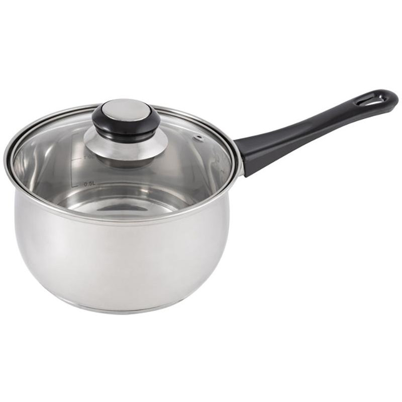 1.9л, (16х9.5см), нерж.сталь, крышка стекло, ручка бакелит, дно 3х слойное, подходит для всех типов плит
