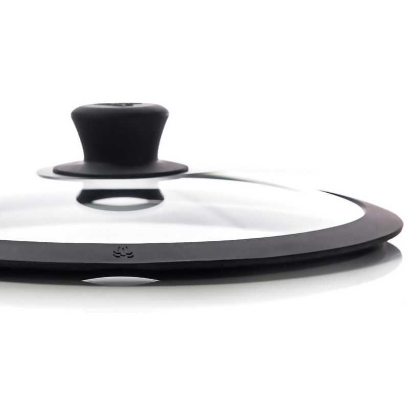 20см, термостойкое стекло, силиконовый обод черного цвета, отверстия для паровыпуска находятся в ободе, пригодна для ПММ, упаковка п/э пакет
