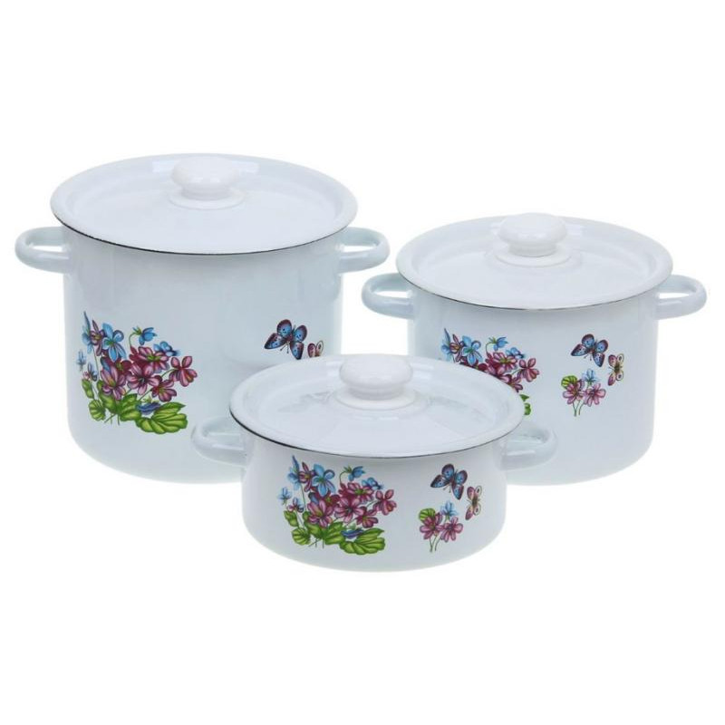 N16B24 Набор кастрюль эмал (6 предметов, цилиндр) белый Фиалка