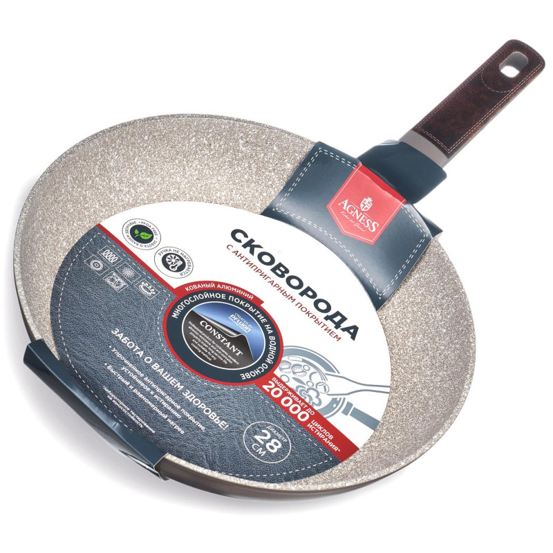 Сковорода с антипригарным покрытием pfluon marble, 28*5,2 см AGNESS 902-113
