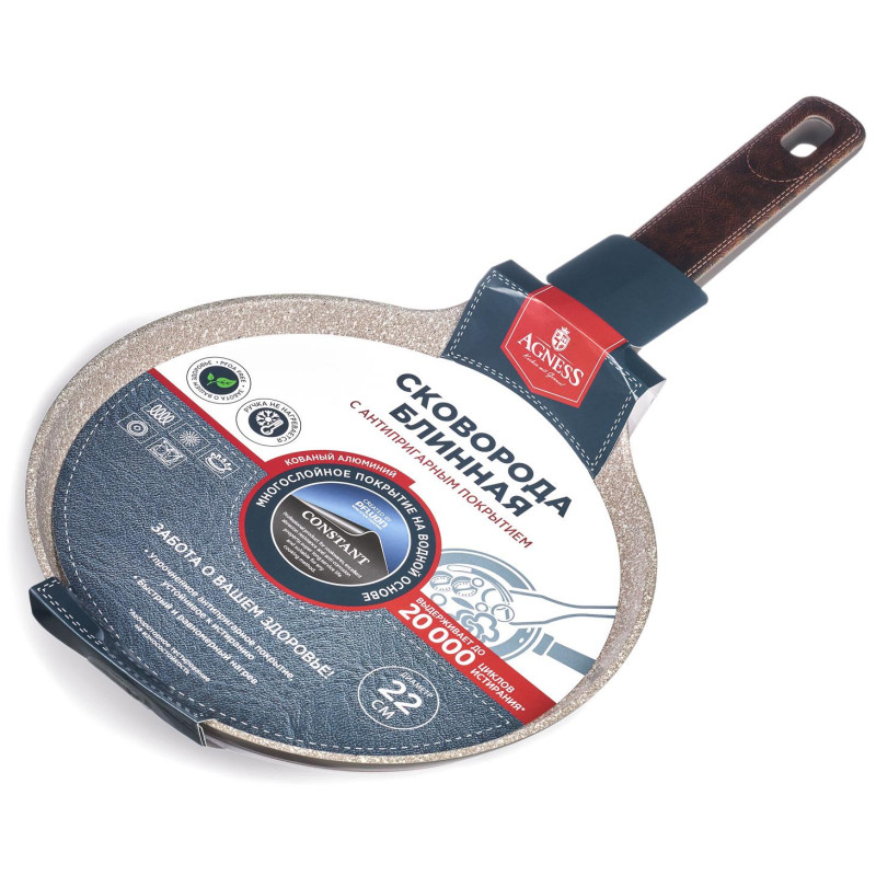 Сковорода блинная с антипригарным покрытием pfluon marble, 22*4,3 см AGNESS 902-116
