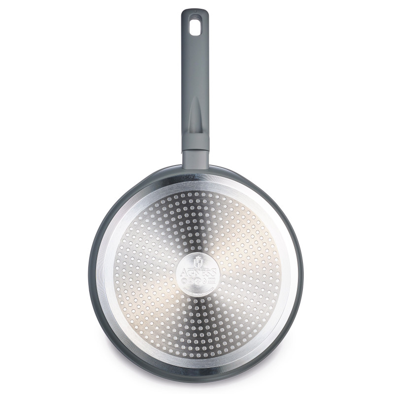 СКОВОРОДА БЛИННАЯ AGNESS С АНТИПРИГАРНЫМ ПОКРЫТИЕМ "CONSTANT" - это идеальный выбор для тех, кто ценит удобство и функциональность в посуде. Одним из главных достоинств этой сковороды является УСИЛЕННОЕ АНТИПРИГАРНОЕ ПОКРЫТИЕ "CONSTANT", которое позволяет готовить без использования большого количества масла и выдерживает до 20 000 циклов истирания. Равномерное нагревание сокращает время приготовления и сохраняет вкус и аромат продуктов. Многослойная структура покрытия обеспечивает превосходные эксплуатационные качества и увеличивает срок службы, не содержит PFOA. Эргономичная ручка из бакелита со стильными вставками не нагревается и не плавится, обеспечивает безопасное использование сковородки в процессе приготовления пищи. Посуда AGNESS - это современный дизайн и новейшие технологии производства.