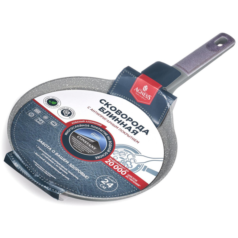 Сковорода блинная с антипригарным покрытием pfluon marble, 24*4,3 см AGNESS 902-125