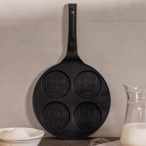 Сковороды AGNESS серии "СМАЙЛ" выполнены из литого алюминия. Такая посуда отличается высокой теплопроводностью и устойчивостью к деформациям. Необычный дизайн сковороды позволит приготовить интересные и веселые оладушки и омлеты.