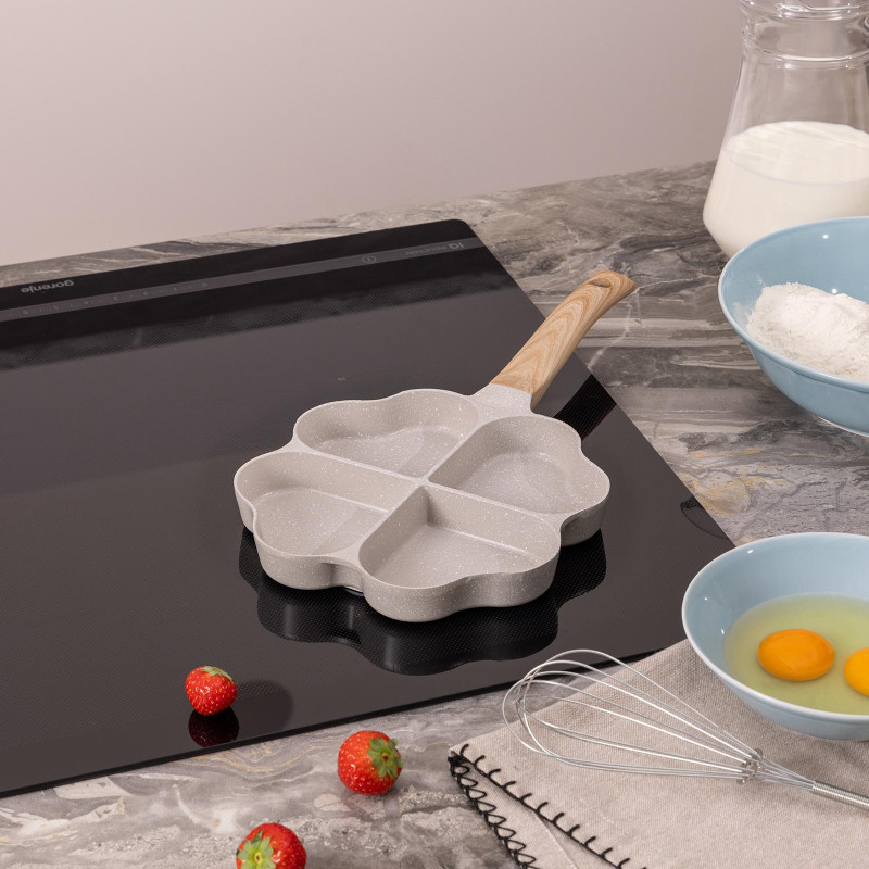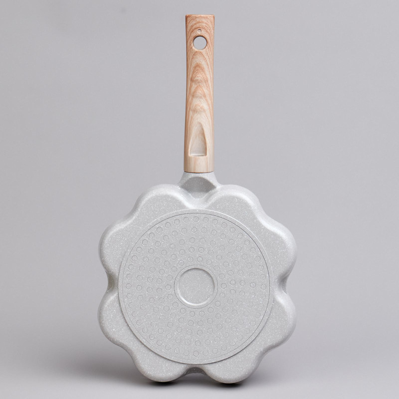 Сковороды AGNESS выполнены из литого алюминия. Такая посуда отличается высокой теплопроводностью и устойчивостью к деформациям. Необычный дизайн сковороды позволит приготовить интересные и веселые оладушки и омлеты.