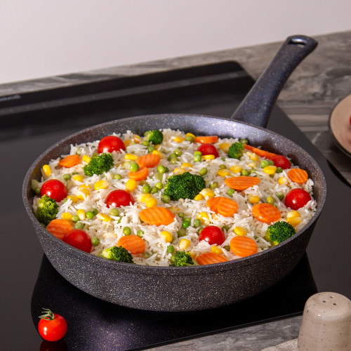 Сковорода глубокая с антипригарным " МРАМОРНЫМ" покрытием, серия GRANITE, 28х6,6см AGNESS 952-015
