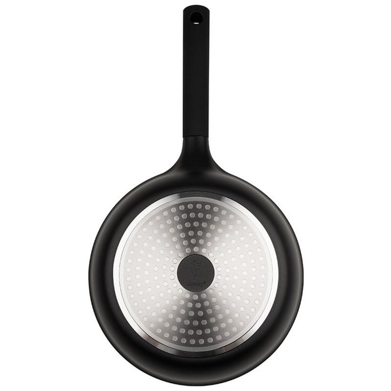 24см, литой алюминий с антипригарным покрытием TITAN, толщина дна/стенок: 3,5/2,2 мм, высота стенок: 50 мм, бакелитовая ручка с покрытием soft-touch, внутри двухслойное особо прочное антипригарное покрытие (Pfluon), снаружи матовое черное антипригарное покрытие,без крышки, подходит д/всех типов плит, включая индукционные