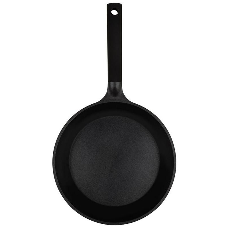 26см, литой алюминий с антипригарным покрытием TITAN, толщина дна/стенок: 3,5/2,2 мм, высота стенок: 50 мм, бакелитовая ручка с покрытием soft-touch, внутри двухслойное особо прочное антипригарное покрытие (Pfluon), снаружи матовое черное антипригарное покрытие,без крышки, подходит д/всех типов плит, включая индукционные