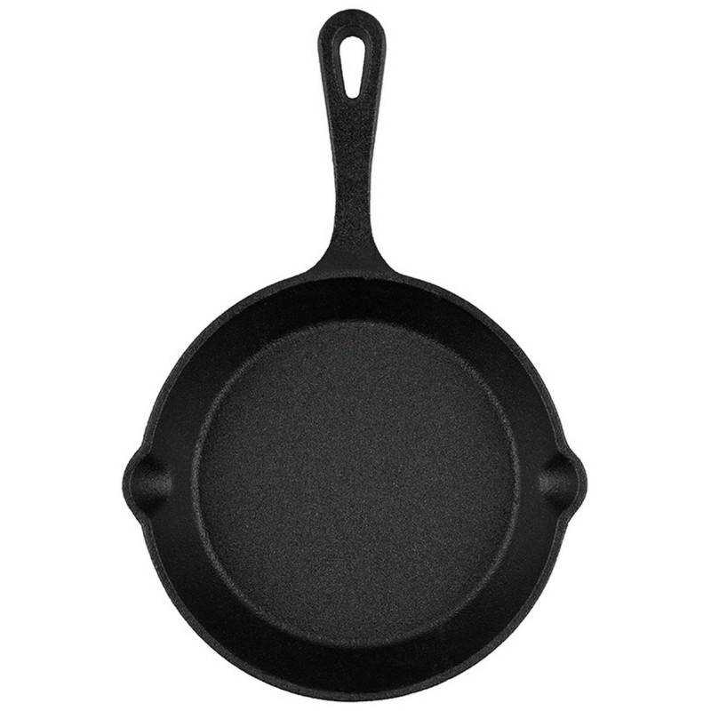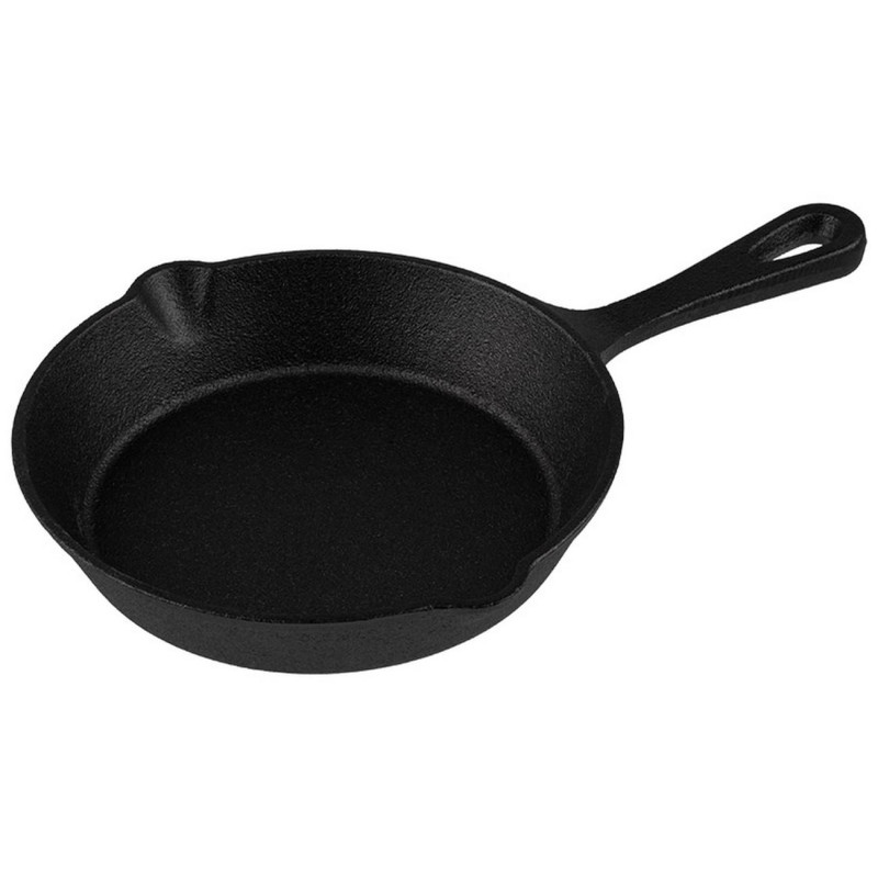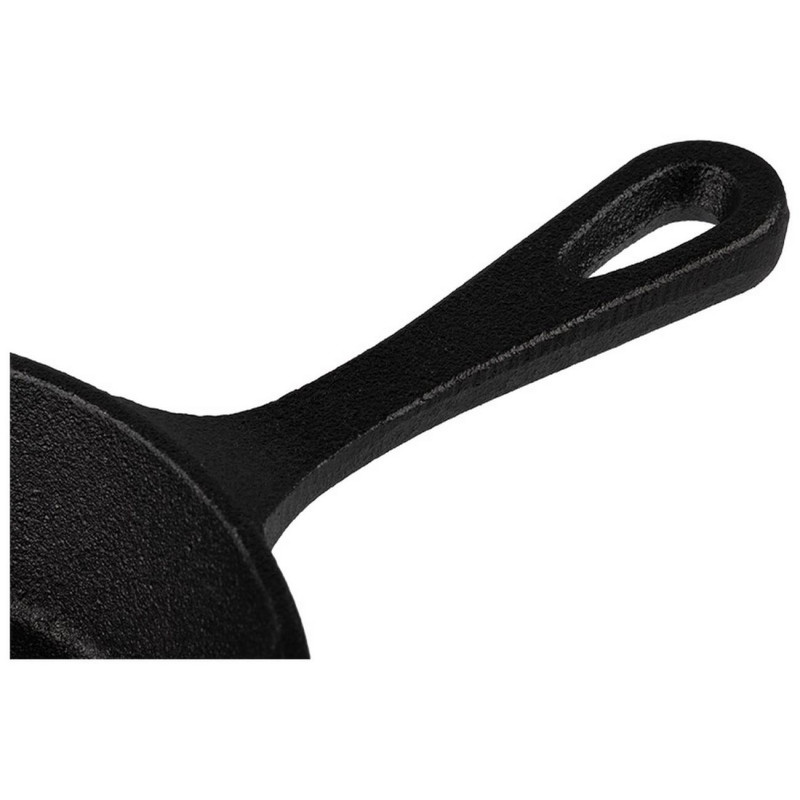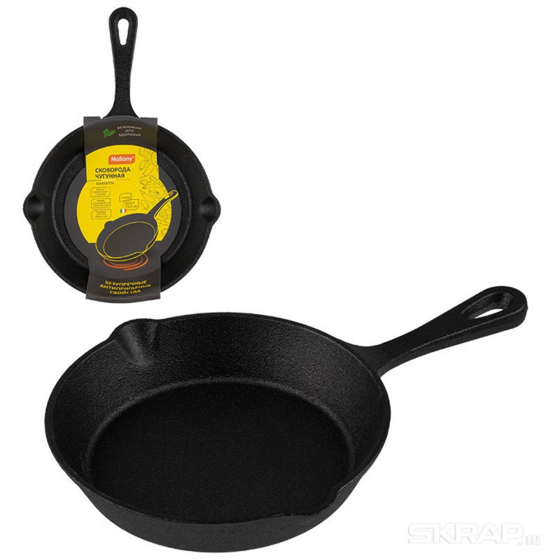 15,5*3 см, с чугунной ручкой, без крышки, материал: промасленный чугун, длина ручки - 25 см., ручка с отверстием для подвешивания, подходит для всех видов плит