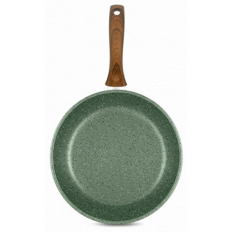 26см, литой алюминий, антипригарное покрытие, ручка с имитацией дерева, подходит для всех видов плит, кроме индукции, можно мыть в пмм